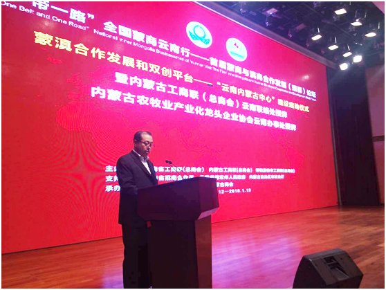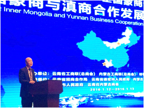 112日下午,由云南省工商聯(lián)(總商會(huì))、內(nèi)蒙古自治區(qū)工商聯(lián)(總商會(huì))、內(nèi)蒙古自治區(qū)呼和浩特市工商聯(lián)(總商會(huì))主辦,云南省招商合作局、云南省德宏州人民政府、內(nèi)蒙古自治區(qū)農(nóng)牧業(yè)廳支持,內(nèi)蒙古農(nóng)牧業(yè)產(chǎn)業(yè)化龍頭企業(yè)協(xié)會(huì)聯(lián)合主辦,瑞麗市人民政府和云南省內(nèi)蒙古商會(huì)共同承辦的首屆“一帶一路”全國蒙商云南行——蒙商與滇商合作發(fā)展(瑞麗)論壇在德宏州瑞麗市隆重舉行。