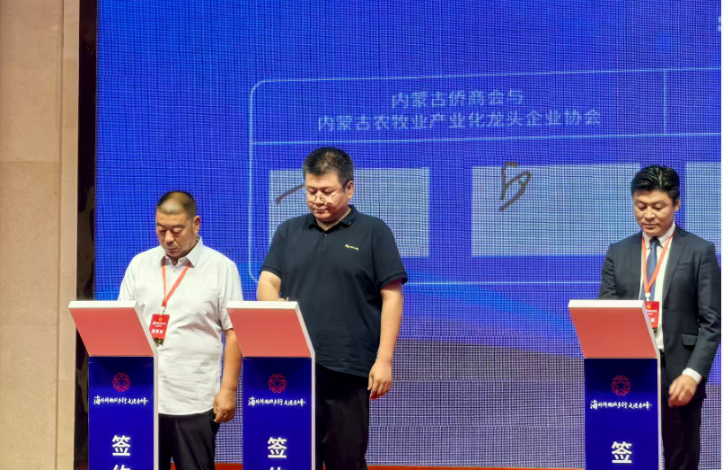儀式現(xiàn)場(chǎng)還舉行了內(nèi)蒙古僑聯(lián)海外委員聘書(shū)頒發(fā)儀式和簽約儀式,內(nèi)蒙古農(nóng)牧業(yè)產(chǎn)業(yè)化龍頭企業(yè)協(xié)會(huì)副會(huì)長(zhǎng)單位赤峰東榮羊絨制品有限公司代表協(xié)會(huì)進(jìn)行簽約。