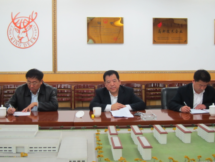 林永亮常務(wù)副會(huì)長(zhǎng)、羊絨分會(huì)會(huì)長(zhǎng)王風(fēng)之、秘書長(zhǎng)魯耀武在鹿王羊絨有限公司參加調(diào)研座談會(huì)