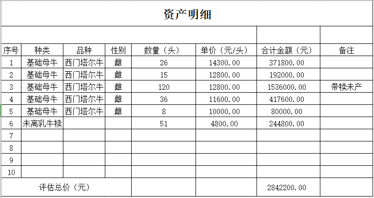 2)本次轉(zhuǎn)讓的標的中包含:體質(zhì)稍壯帶有未離乳牛犢的基礎母牛有26頭、體質(zhì)稍弱帶有未離乳牛犢的基礎母牛有25頭、帶犢未產(chǎn)的基礎母牛有110頭、體質(zhì)稍壯未孕未帶犢基礎母牛有36頭、體質(zhì)稍弱未孕未帶犢基礎母牛有8頭、未離乳牛犢51頭(為前述26+25頭基礎母牛所生)。