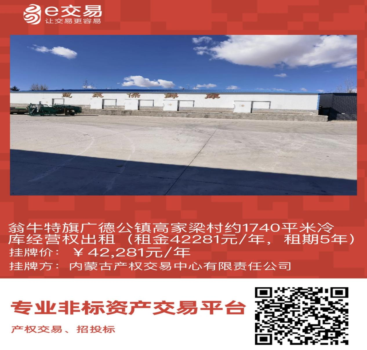 翁牛特旗廣德公鎮(zhèn)高家梁村約1740平米冷庫經(jīng)營權出租(租金42281元/年,租期5年)