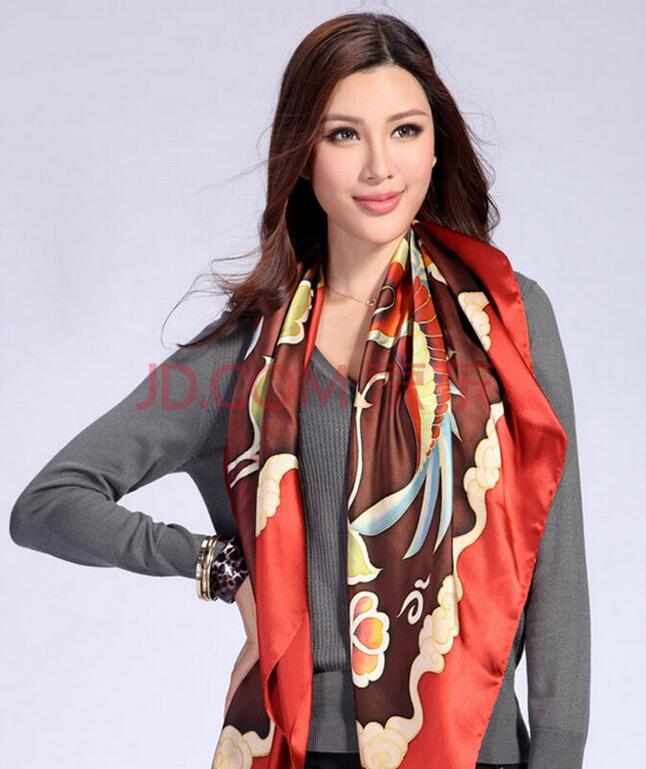 鹿王羊絨官方正品 春夏真絲大方巾春夏桑蠶絲女士絲巾圍巾咖紅色鳳凰(咖紅)