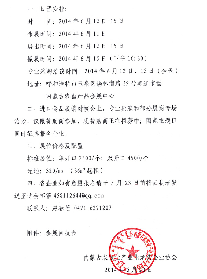 關(guān)于參加第一屆內(nèi)蒙古國(guó)際食品貿(mào)易對(duì)接會(huì)的通知