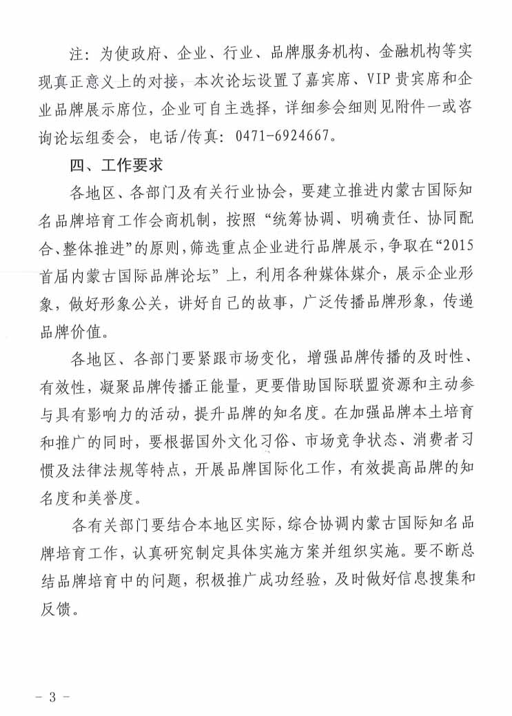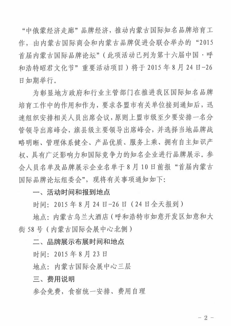關(guān)于參加“2015首屆內(nèi)蒙古國(guó)際品牌論壇”的通知
